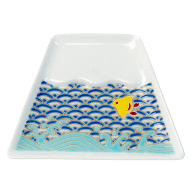 - Shaped like Mt. Fuji, this mamezara plate has traditional patterns painted on it.
