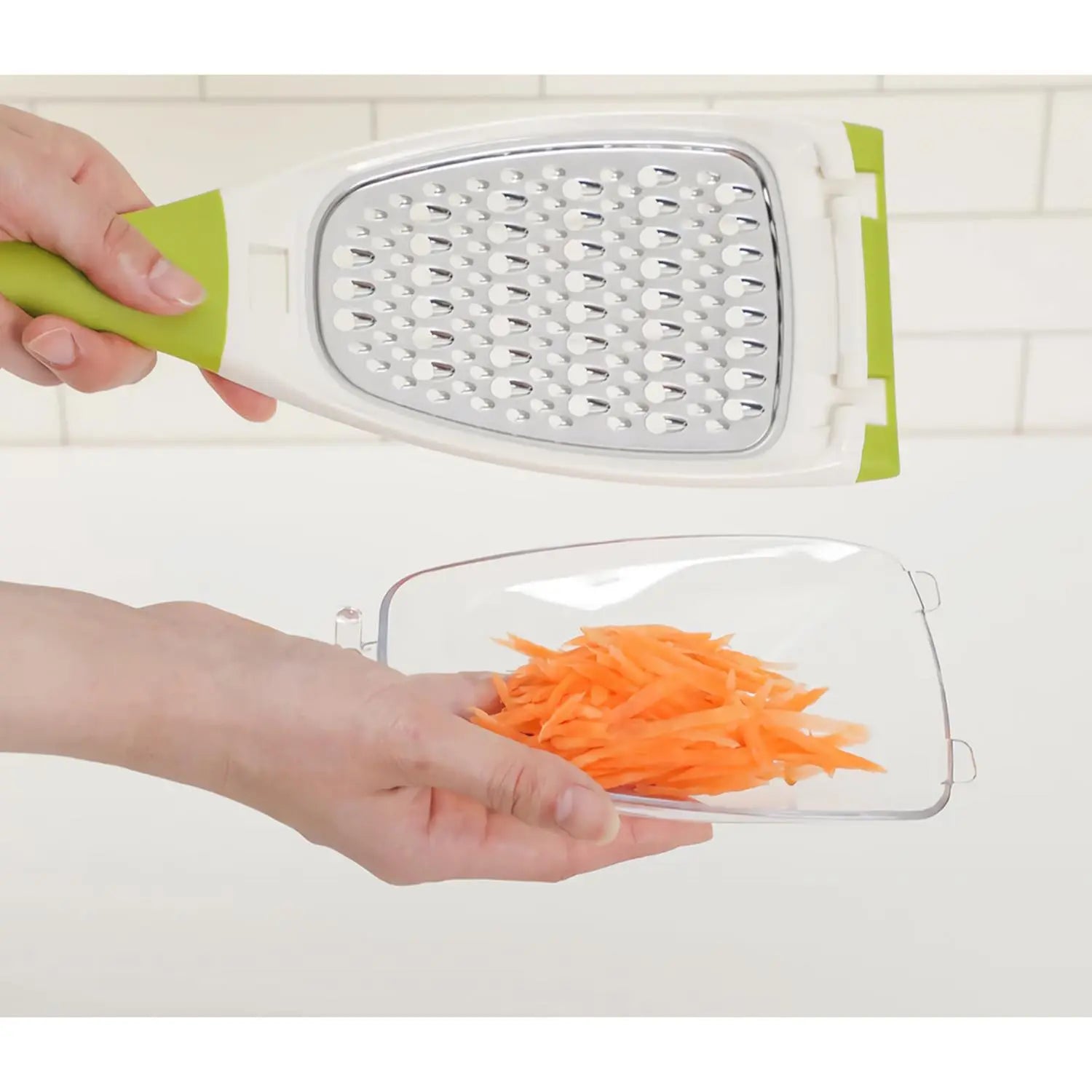 - The detachable catch tray snaps seamlessly onto the mandoline, keeping your workspace spotless while collecting every perfectly sliced ingredient.