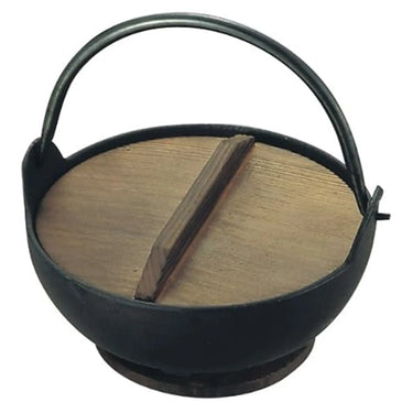 - This authentic cast iron Inaka hot pot combines Japanese countryside charm with practical design, featuring a wooden lid and pot mat for the perfect dining experience.