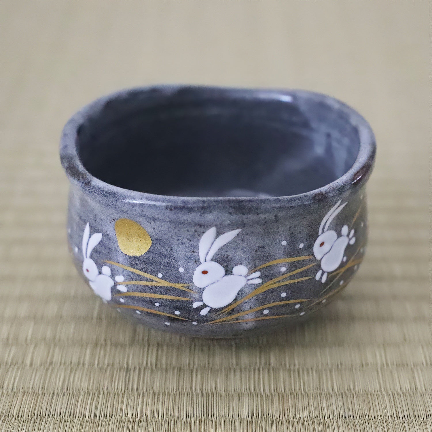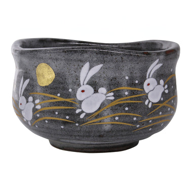 Kutani Ware Porcelain Hopping Rabbit Matcha Tea Bowl