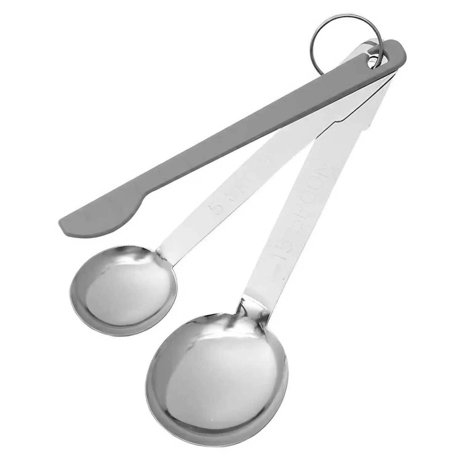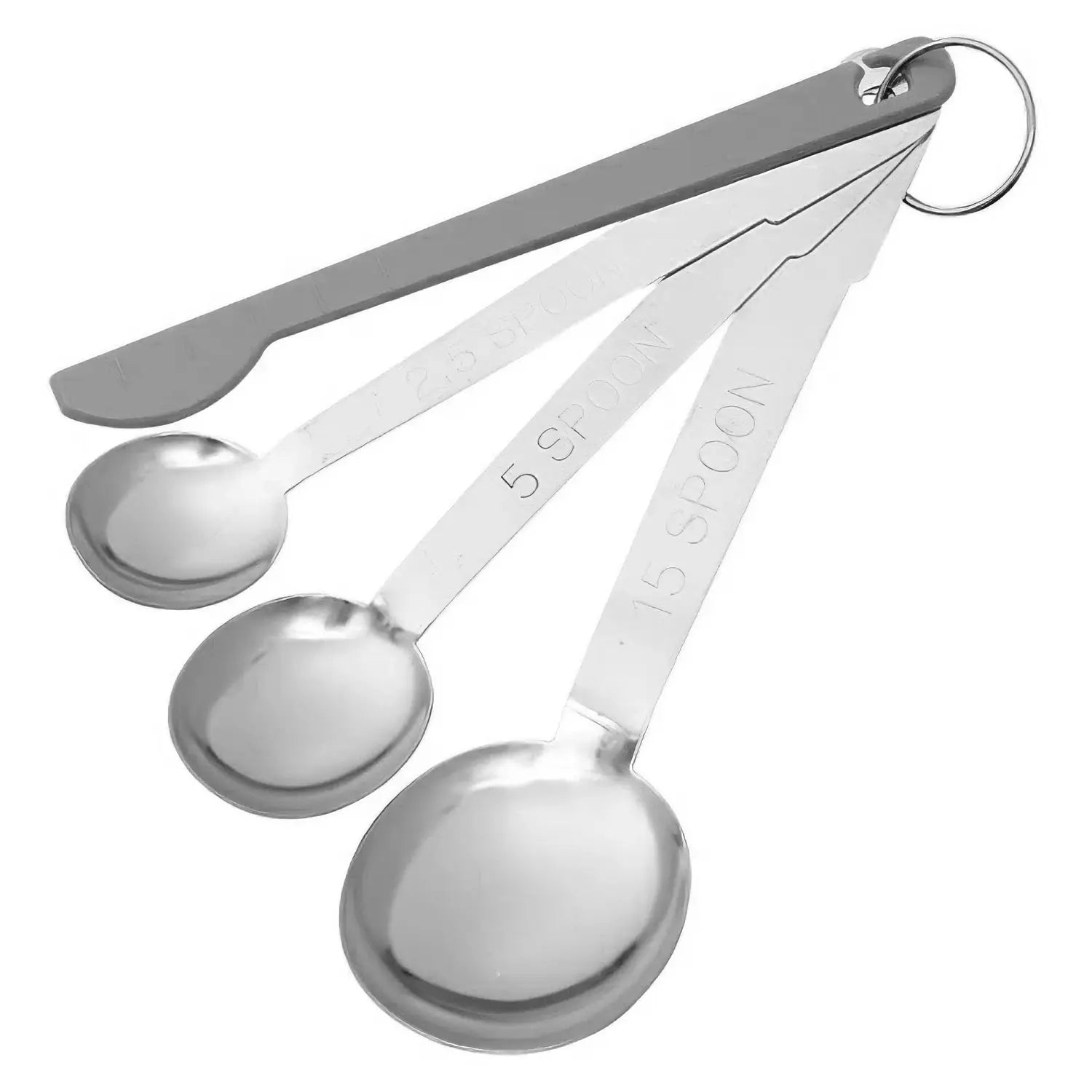- This measuring spoon set includes a practical flattening spatula for easy, clean leveling.