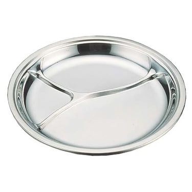 - A compartment plate made of stainless steel.