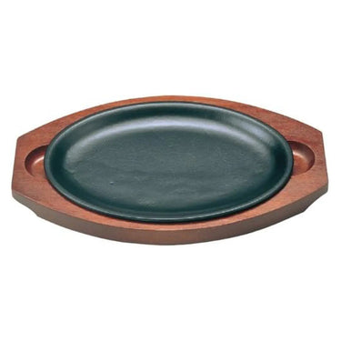 - Elevate your dining experience with this cast iron sizzler plate, complete with a wooden base that adds both style and functionality to your table.