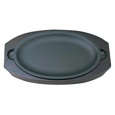 - This durable sizzler plate is perfect for cooking and serving in one smooth step. Its included wooden base offers heat protection and a secure grip, making it easy to confidently carry piping-hot dishes directly from the stove to your table.