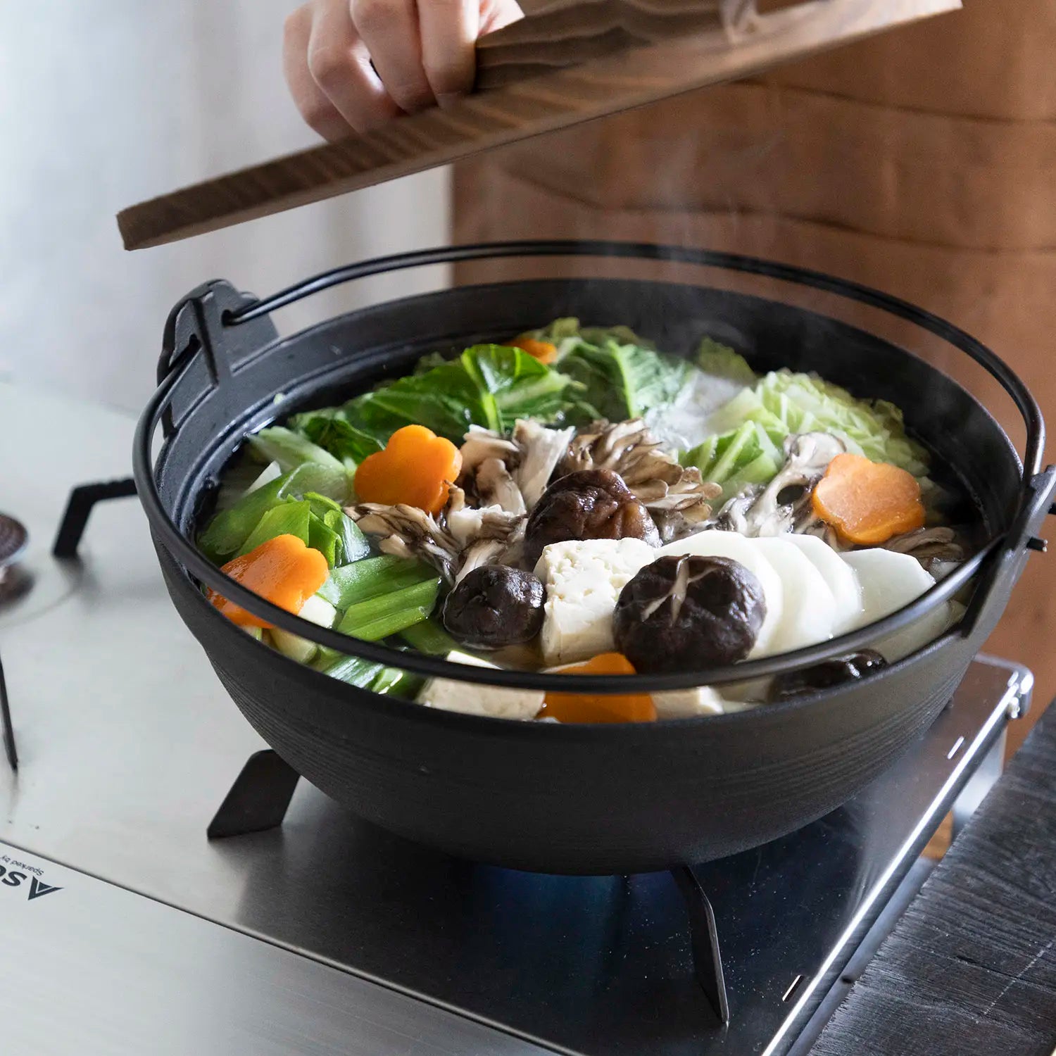 - Suited for the dishes such as oden, sukiyaki, etc. due to a deep pot.
