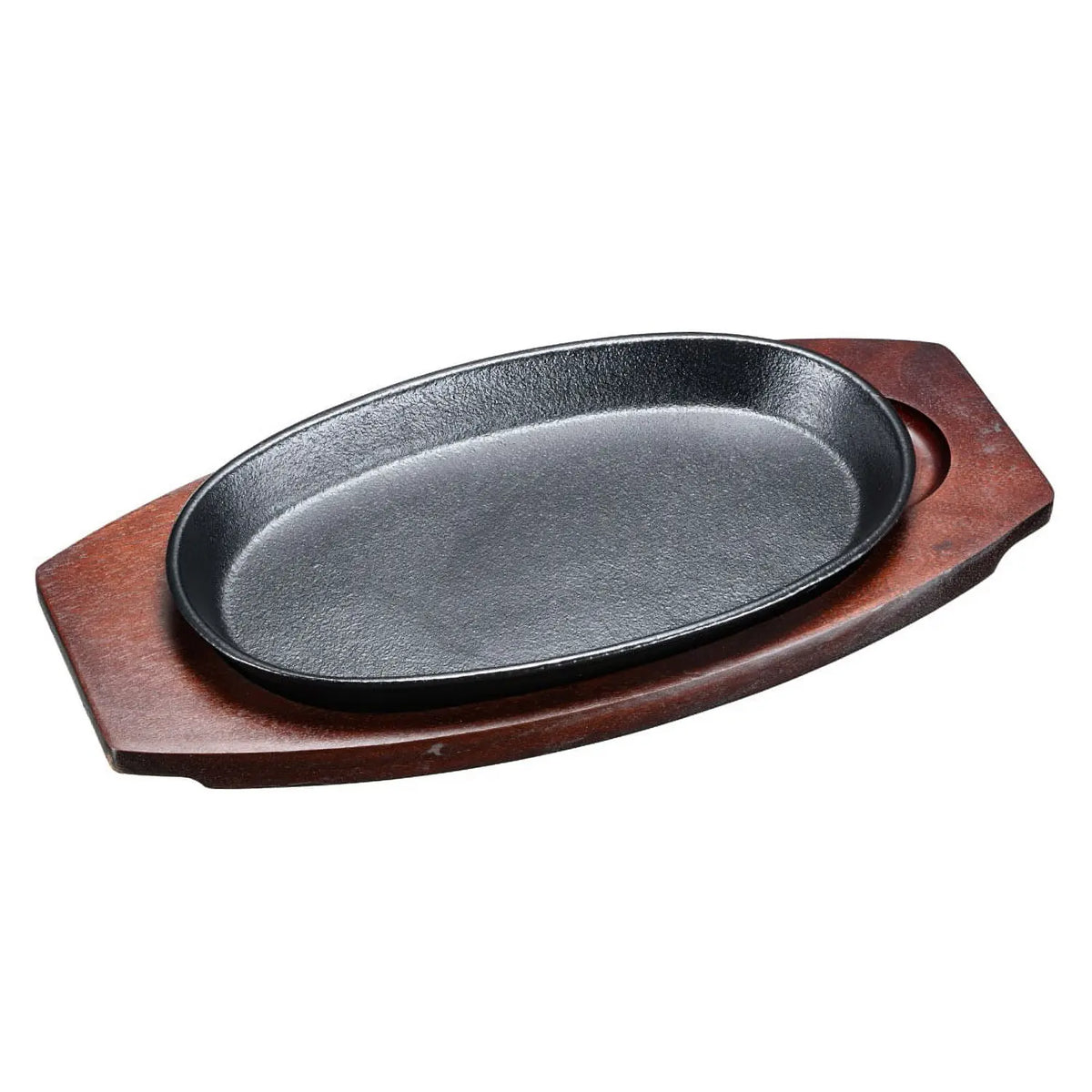 - Elevate your dining experience with this cast iron sizzler plate, complete with a wooden base that adds both style and functionality to your table.