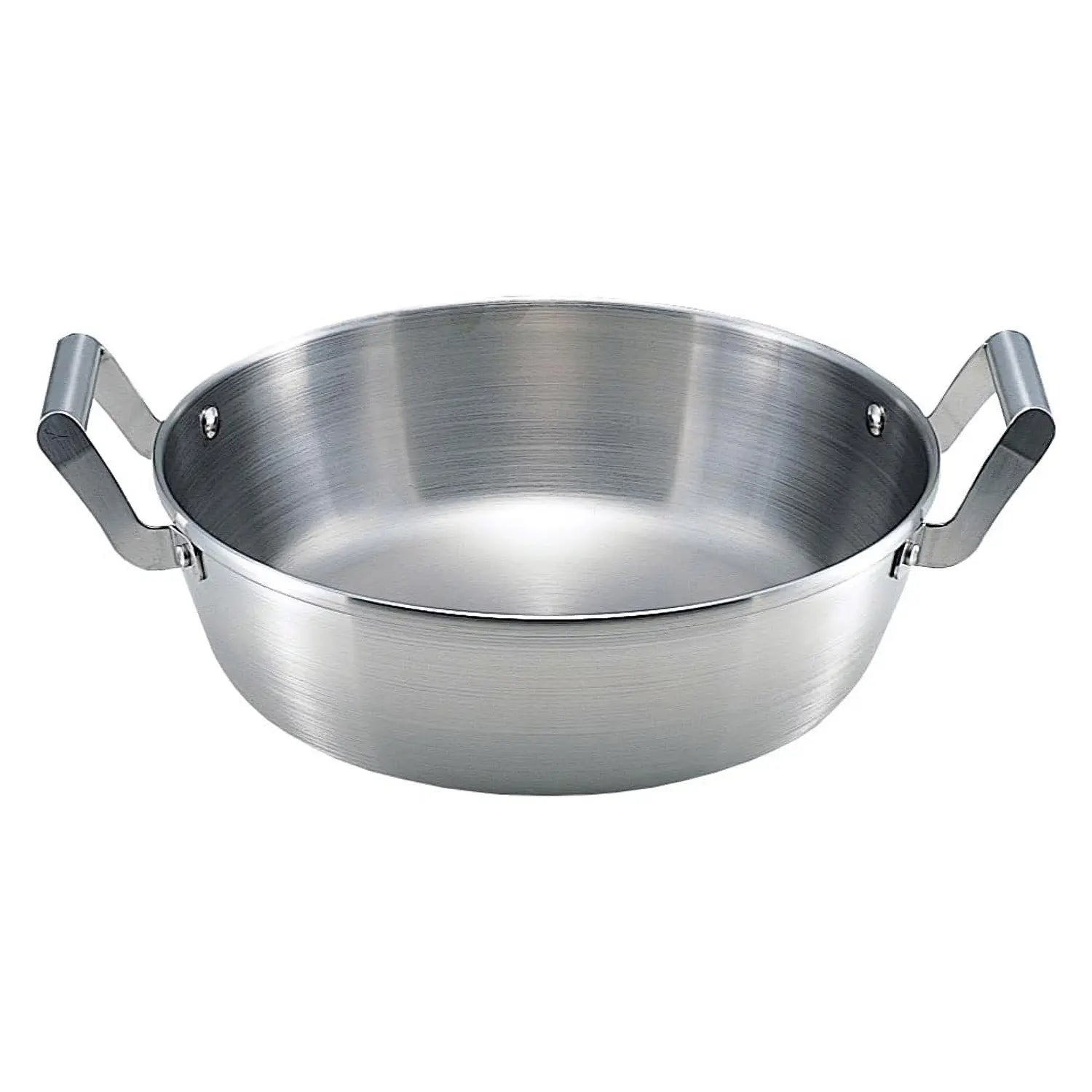 - Ø24㎝:Dimensions (approx): Depth: 90 mm, Thickness: 1.5 mm, Bottom diameter: Ø195 mm, Capacity (approx): 3500 ml (Full capacity), Item weight (approx): 1400 g, Shipping weight (approx): 1600 g