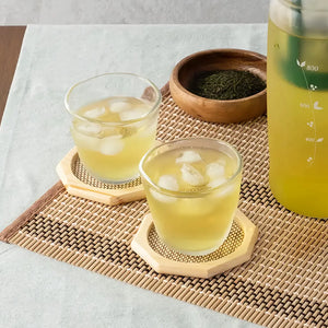 - The design faithfully reproduces the shape of tebineri, a ceramic art technique, on glass.