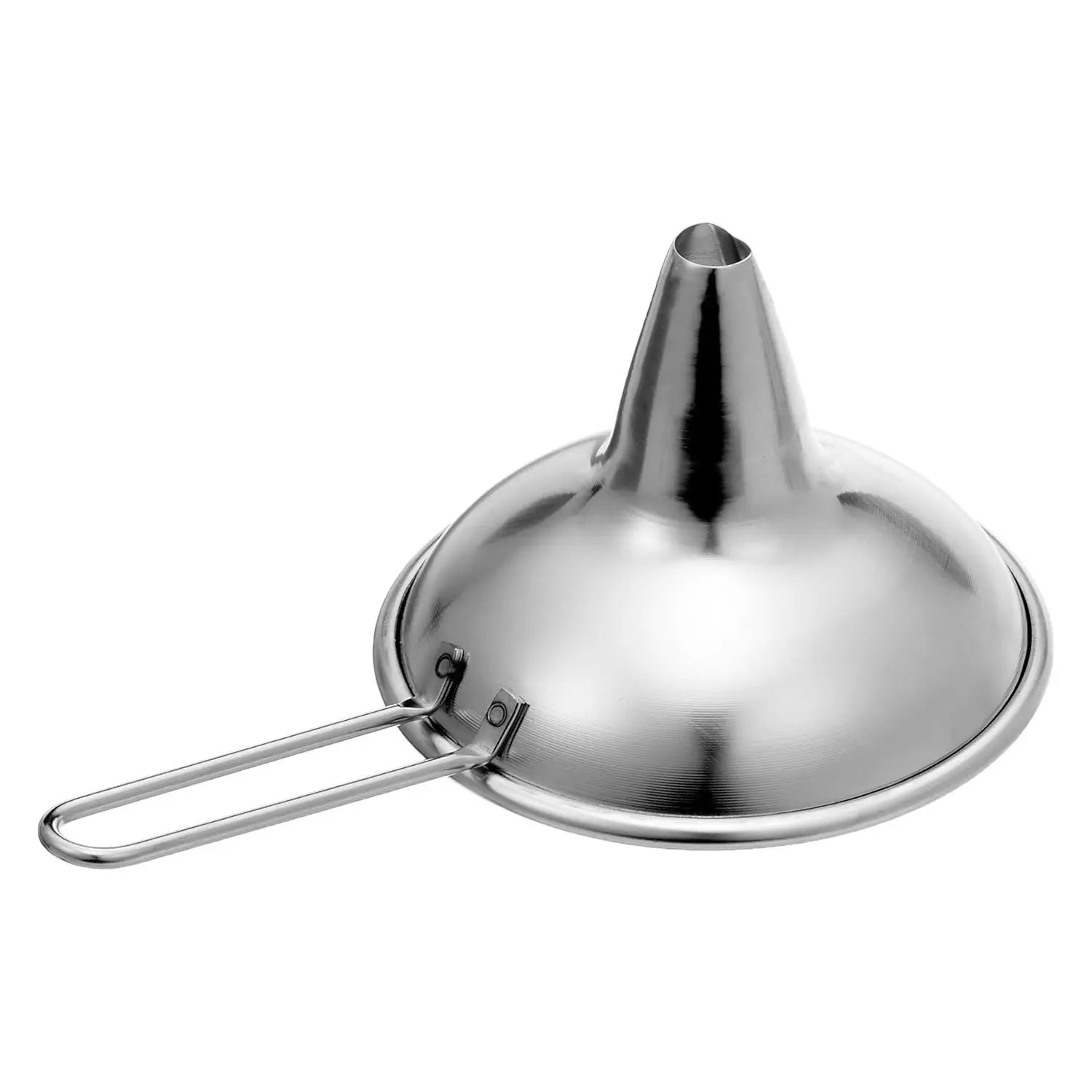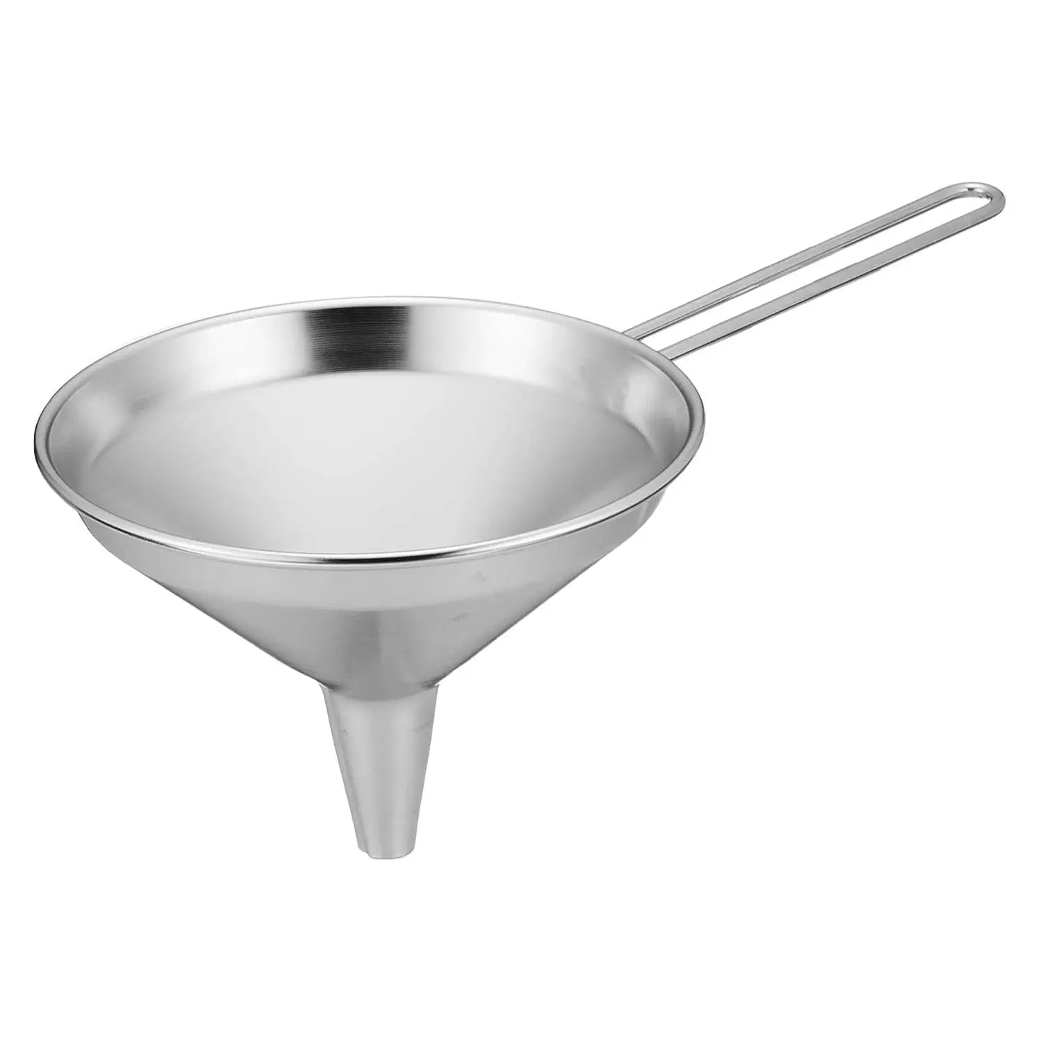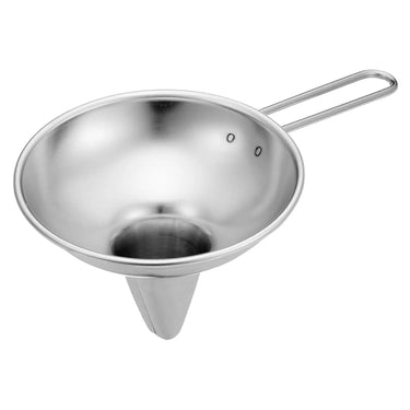 - This funnel has a wire handle that allows for confident, comfortable handling.