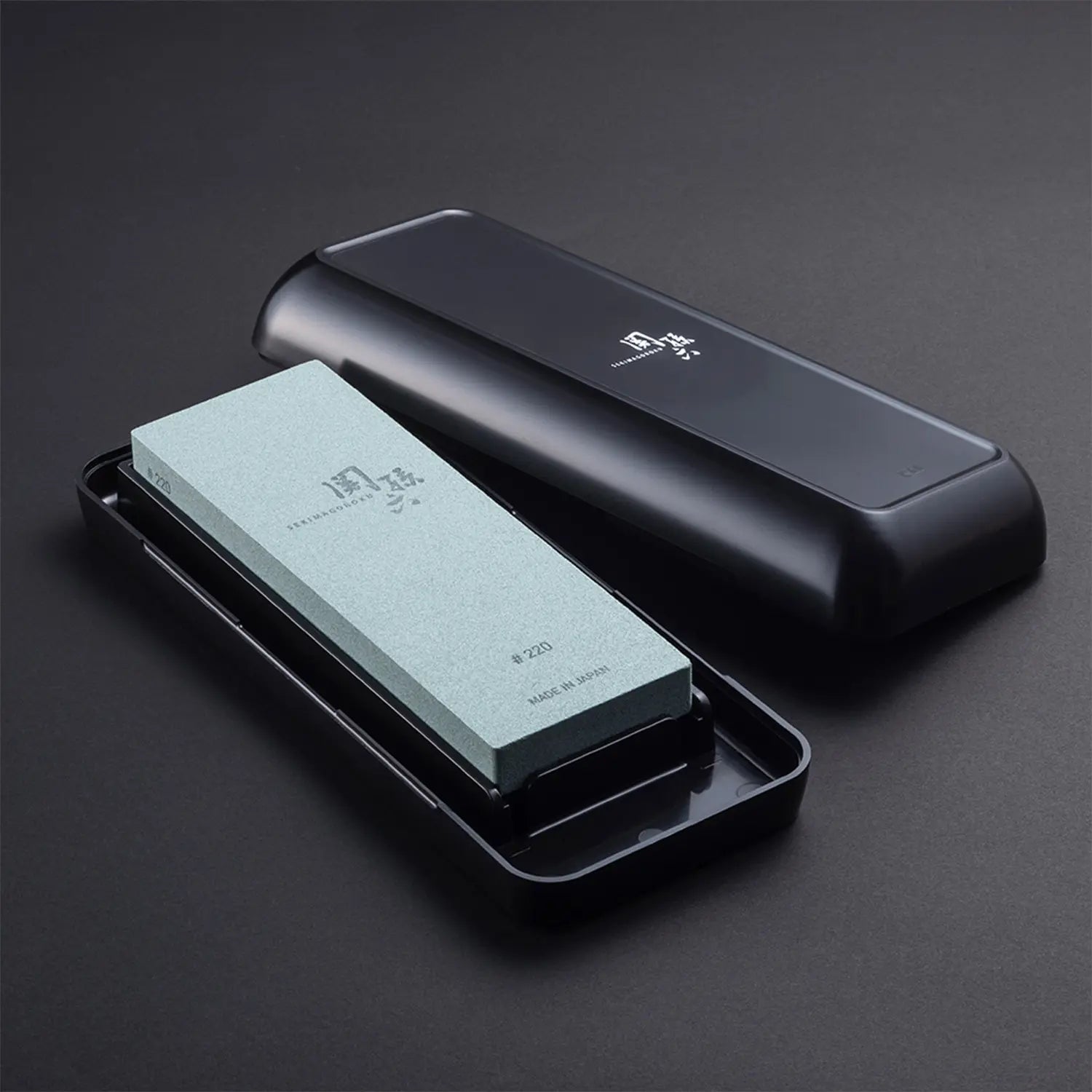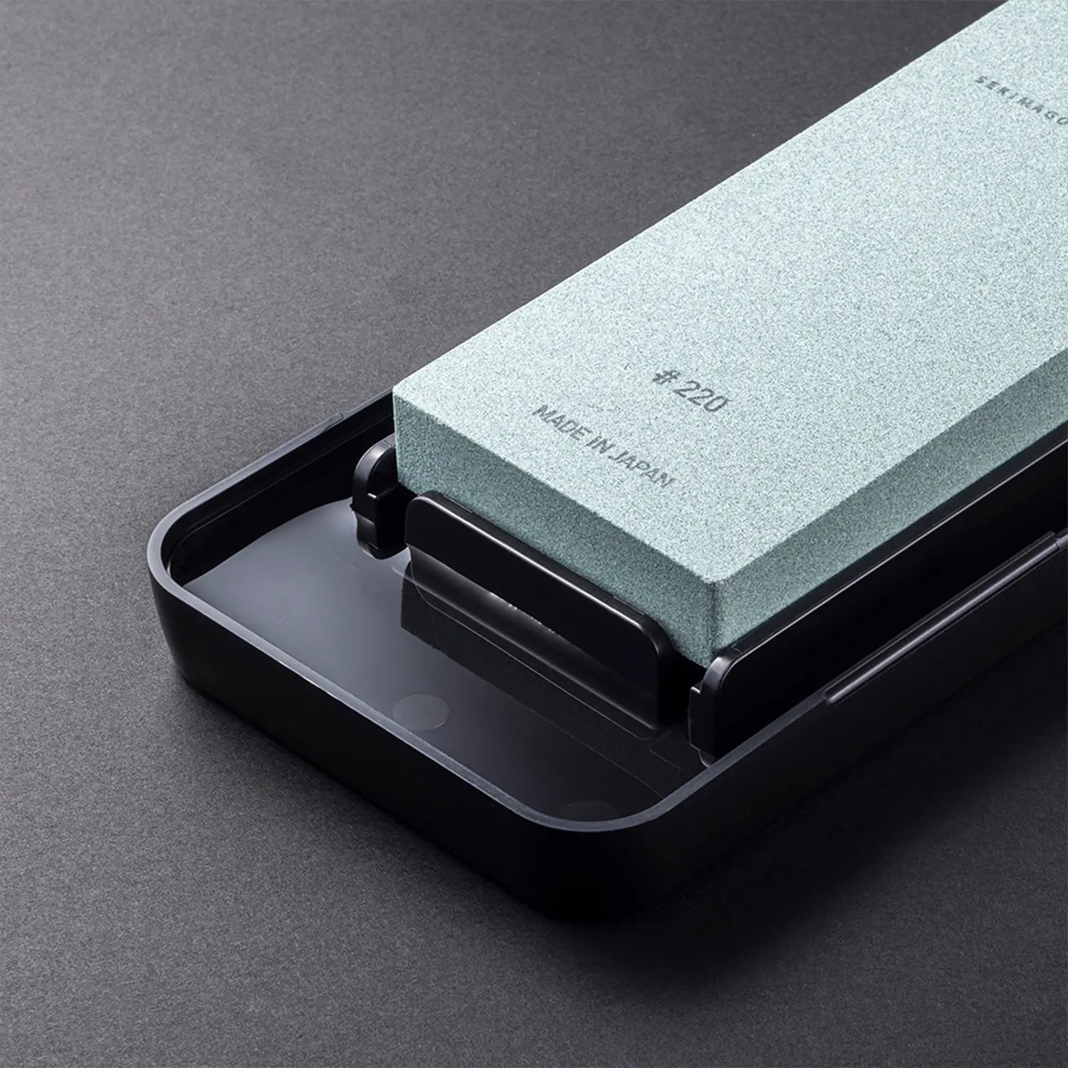 - The case lid serves as a soak container for preparing the stone.