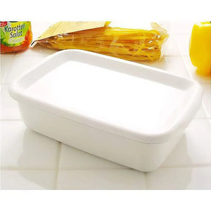 Noda Horo White Series Enamel Rectangle Deep Food Containers with Enamel Lid