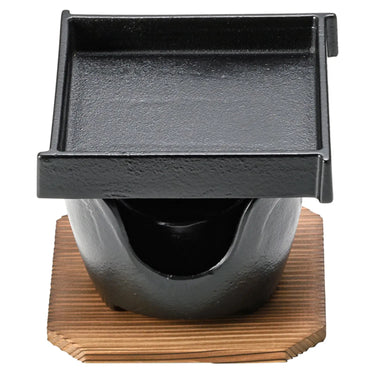 - A tabletop grill set featuring a square iron plate paired with a coordinating base board.