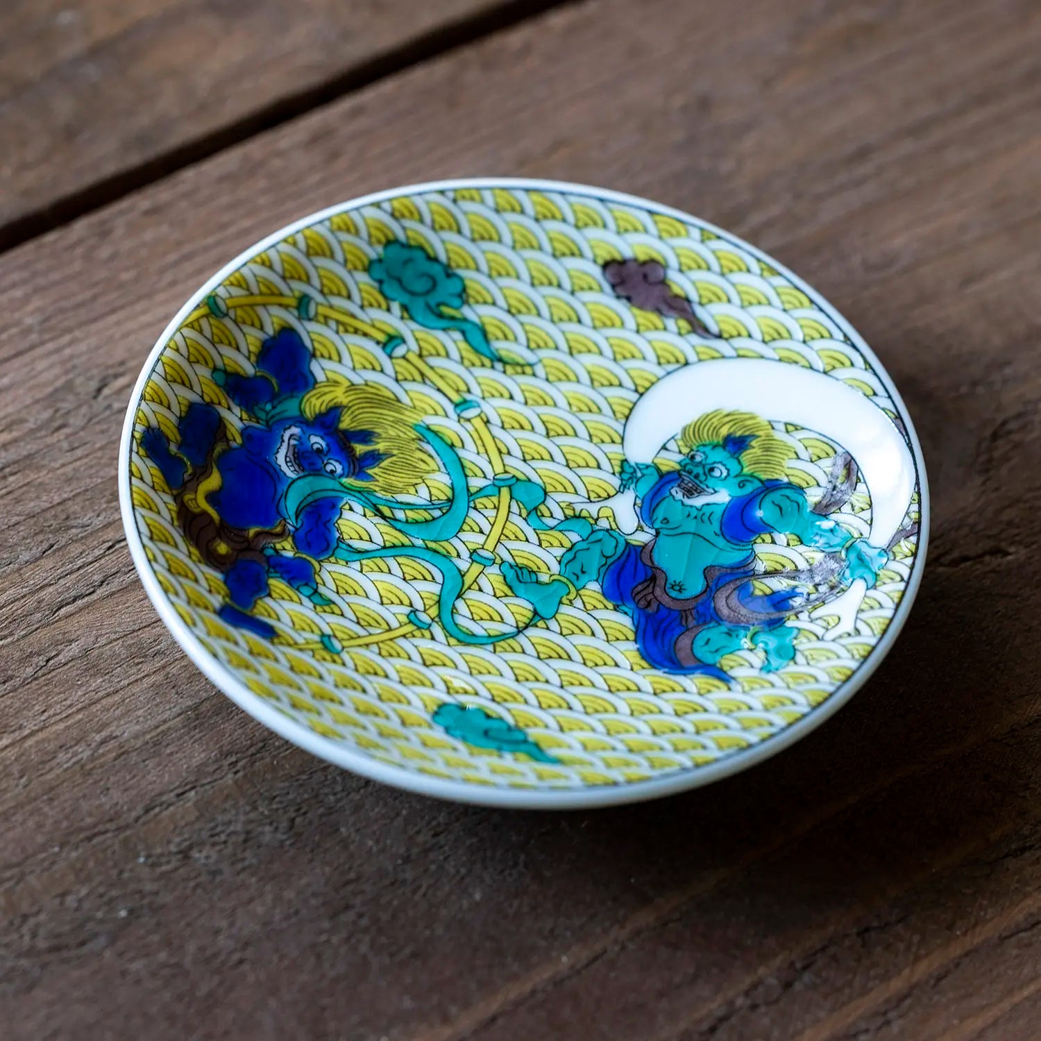 - This mamezara plate has auspicious designs painted with Kutani ware.